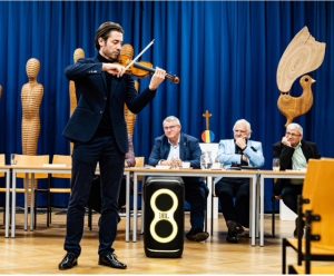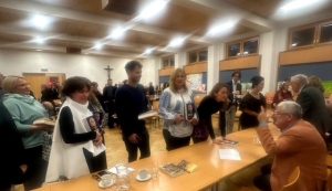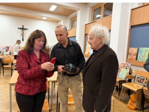 În continuare, la microfon a fost invitat pr. Mag. Ovidiu Pintea, gazda și sufletul Parohiei Catolice din Kagran, care a rostit un cuvânt de binecuvântare și o rugăciune, subliniind frumusețea legăturii dintre credință, artă și comunitate.