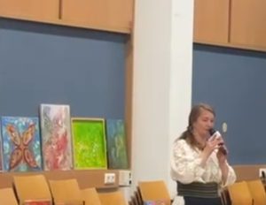 Adriana Weimer, poetă apreciată, venită tocmai de la Lugoj, a oferit un moment de sensibilitate și eleganță literară, recitând versuri proprii, fără a eclipsa pe ceilalți, ci adăugând rafinament și lumină întregii seri.